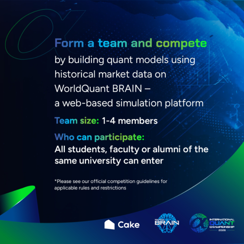 Represent your university in the worldβs largest quantitative finance research competition and compete for a total prize pool of USD $100,000! π°